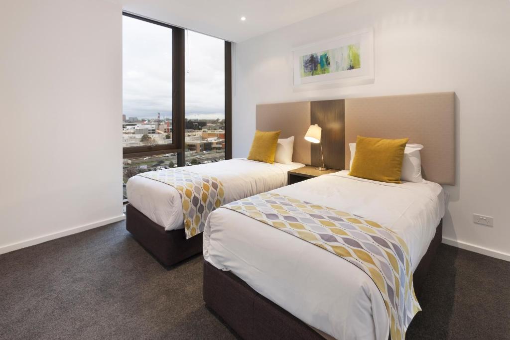 This apartment boasts a balcony. It offers a fully equipped kitchen and laundry facilities. There is a dining and lounge area with a flat-screen TV and DVD player.